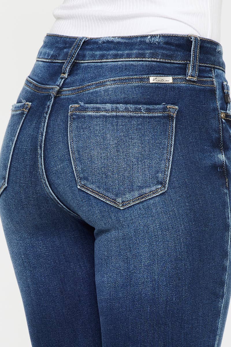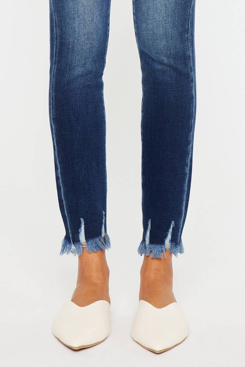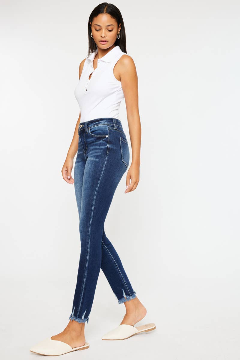 OPEN PACK HIGH RISE FRAY HEM SUPER SKINNY JEANS DARK WASH STRETCH 9.5" RISE, 27" INSEAM IN SIZE 3/25 94% COTTON, 4% T400, 2% SPANDEX 12.3 OZ