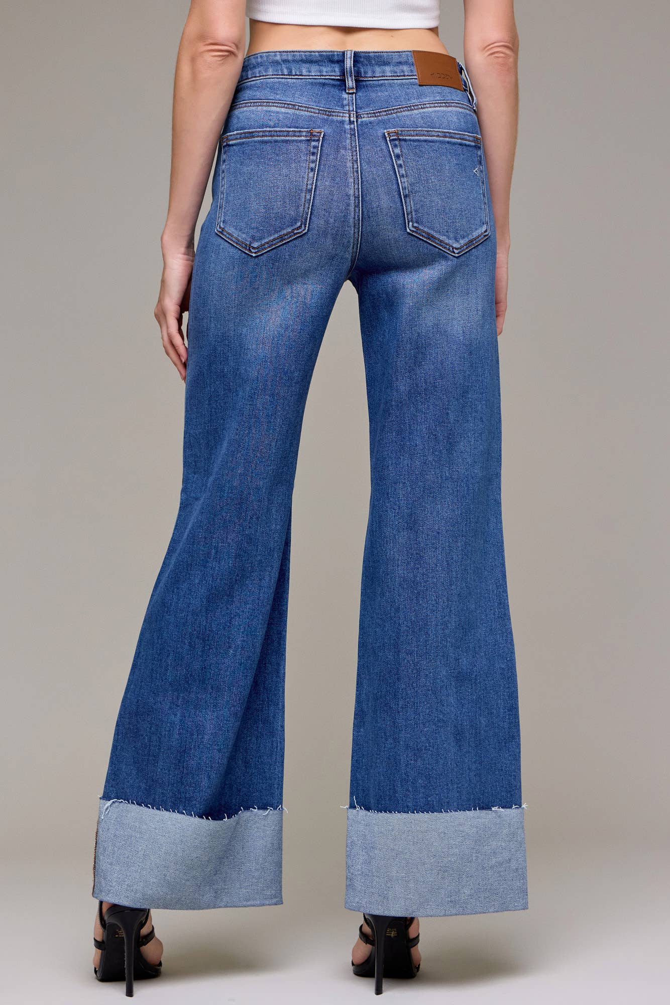 Hidden Medium Wash Clean Cuffed High Rise Comfort Flare
